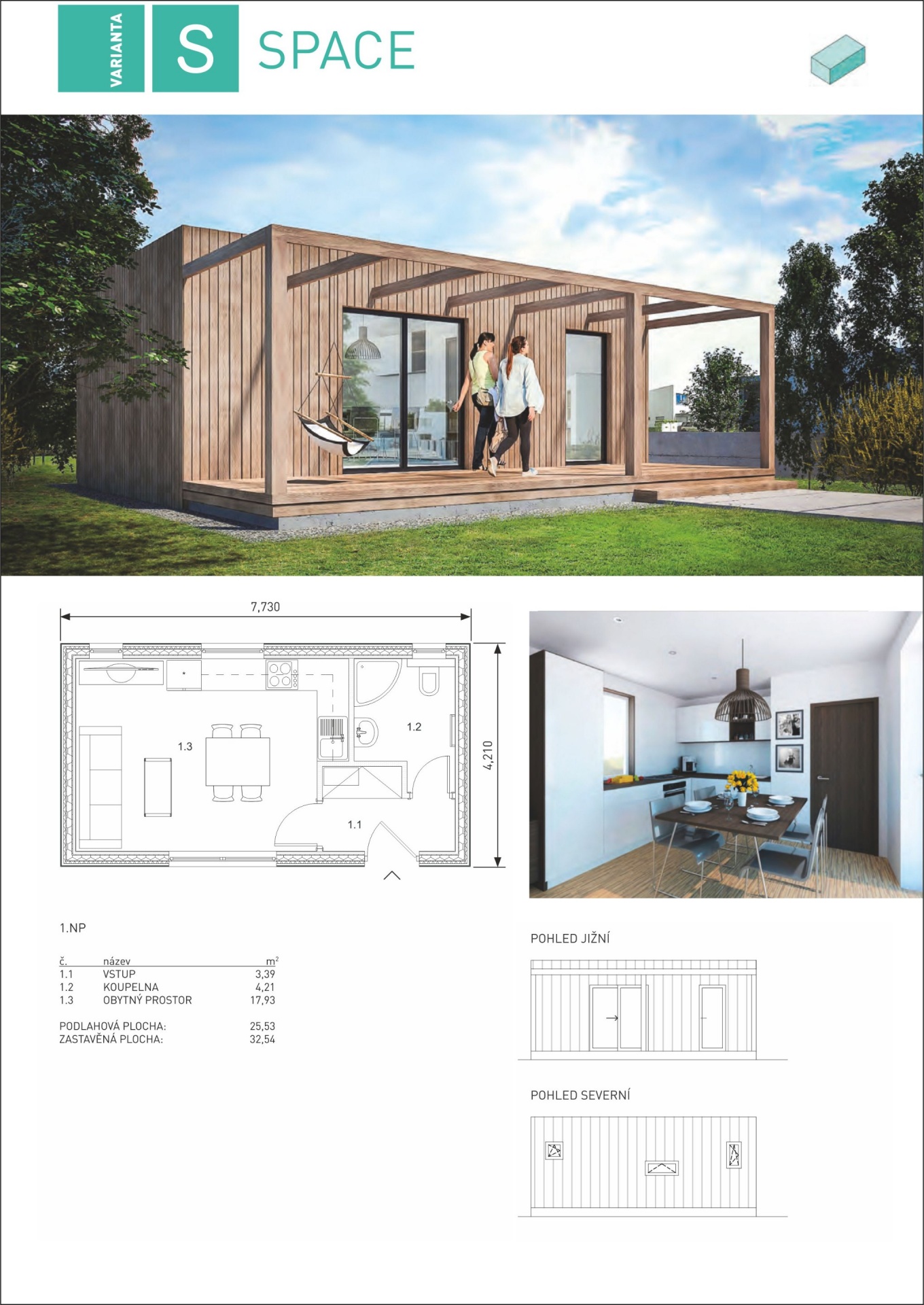 Rostoucí domy pro moderní bydlení - to jsou Modulární dřevostavby KŮLNA. Varianta S-Space je tvořená jedním základním modulem 8x4x3 metry s užitnou plochou 25,5 m2. Vše potřebné pro bydlení 1+kk je soustředěno na minimální ploše. Tuto sestavu je možné využívat nejen pro trvalé bydlení, ale výborně poslouží například jako zahradní domek pro hosty, rekreační objekt nebo ubytovací zařízení.