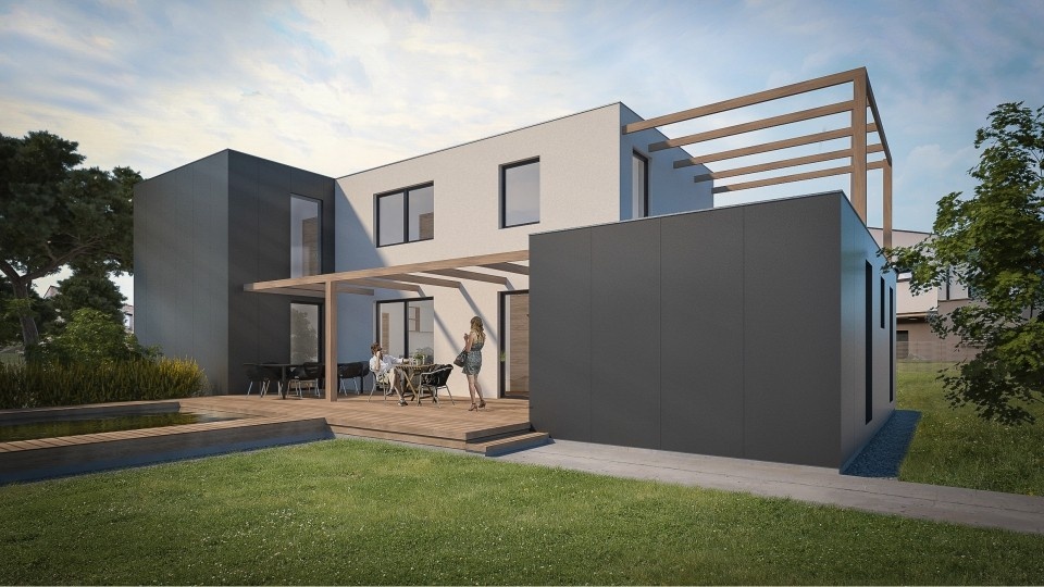 Nízkoenergetický rodinný dům KŮLNA stejně jako všechny naše typové domy je dodáván ve variantě pravá nebo levá. To znamená, že jej lze zrcadlově otočit dle orientace pozemku. Exteriér KŮLNY lze dokončit libovolným fasádním systémem nebo obkladem. Dodavatelské práce a stupně dokončení dle dohody.