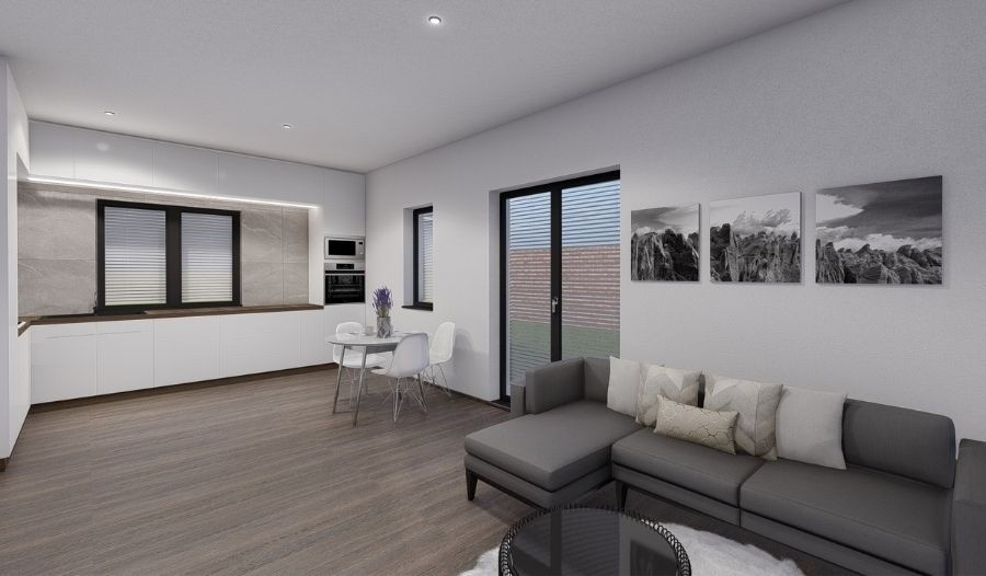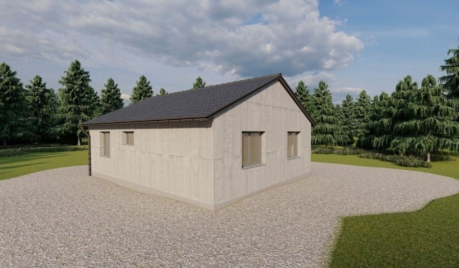 Nízkoenergetický přízemní rodinný dům CLASSIC 63 je postaven ze stavebního systému PURLIVE a může být dodán ve variantě pravá nebo levá, to znamená, že jej lze zrcadlově otočit dle orientace pozemku.