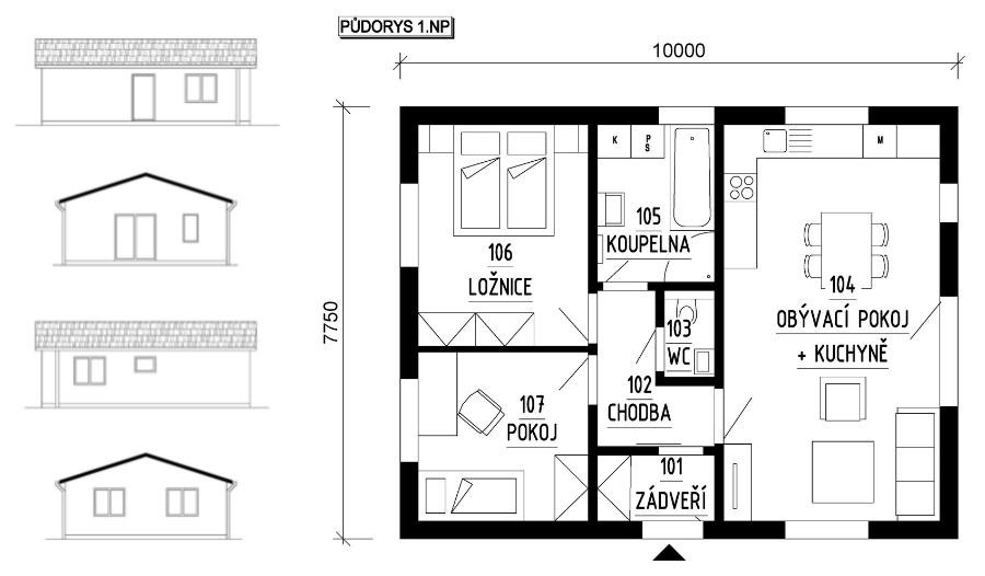Zvýhodněná cena výkresové části projektové dokumentace typového domu CLASSIC 63 činí 25 000 Kč + DPH a je již obsažena v ceně domu. Cena je stanovena na 50 km od Zlína a obsahuje i statický posudek a pojištění stavby.