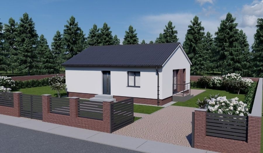 Rodinný dům CLASSIC 63 představuje rozměrově menší nízkoenergetický dům jednoduchého tvaru, který potřebuje pouhých 77,5 m2 zastavěné plochy, aby nabídl dostačujících 62,7m2 užitného prostoru. Logicky uspořádané dispoziční řešení 3+kk dokáže uspokojit až čtyřčlennou rodinu, která bude mít stále zajištěnou oddělenou denní i noční klidovou zónu.