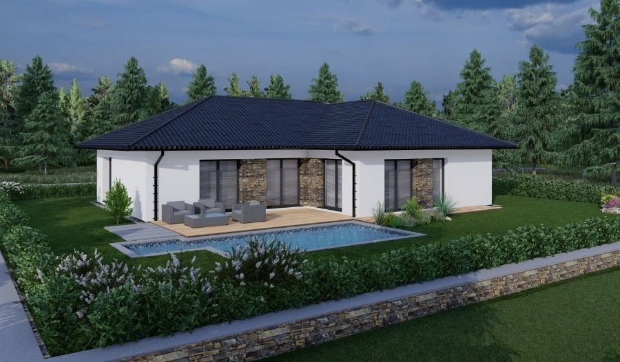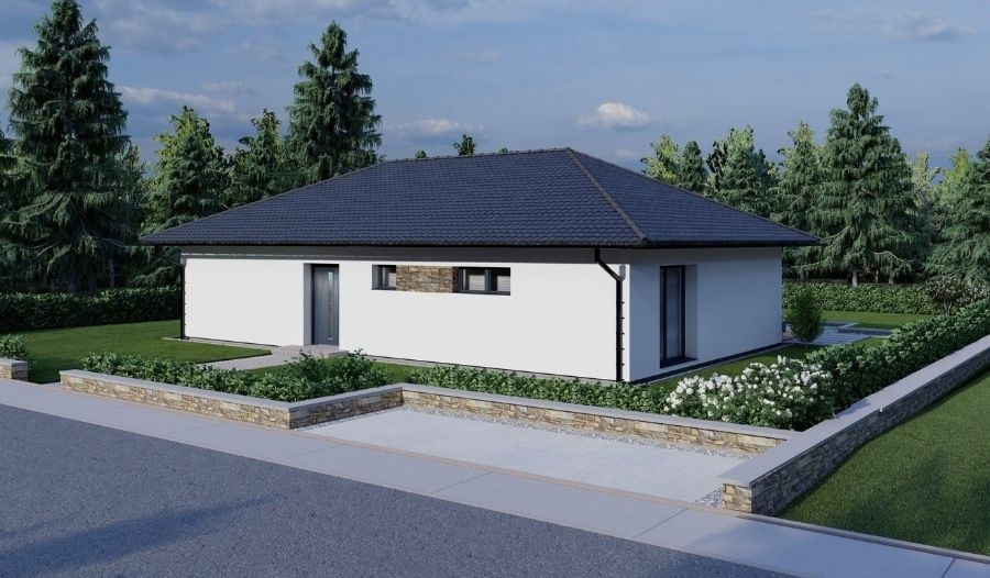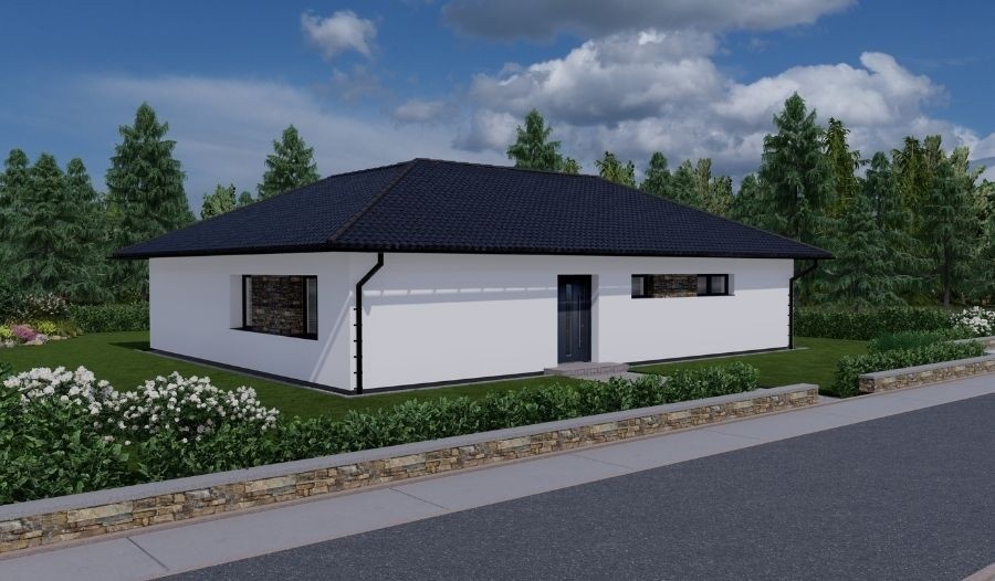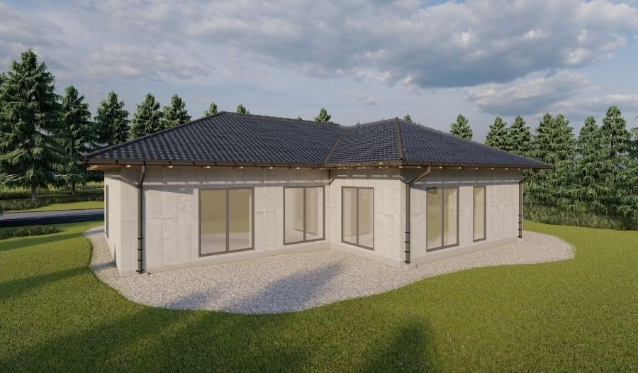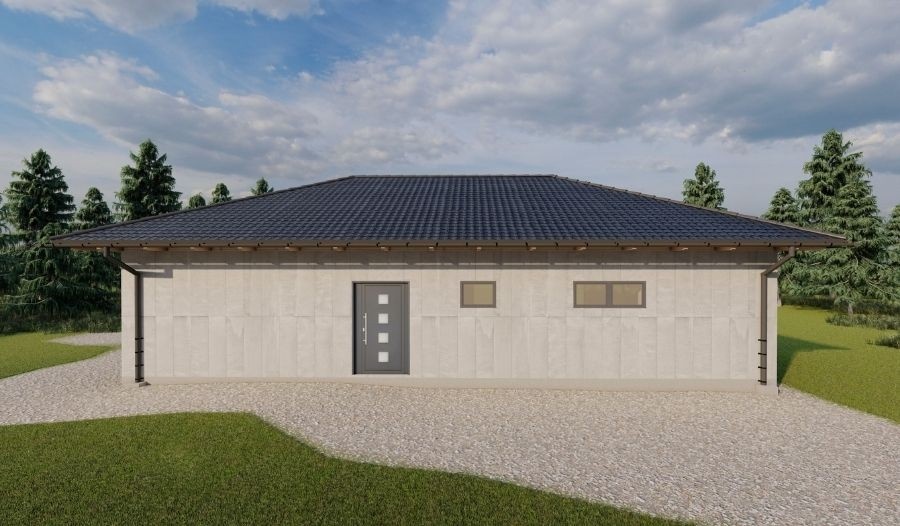 Nízkoenergetický přízemní rodinný dům SWING 125 je postaven ze stavebního systému PURLIVE a může být dodán ve variantě pravá nebo levá, to znamená, že jej lze zrcadlově otočit dle orientace pozemku.
