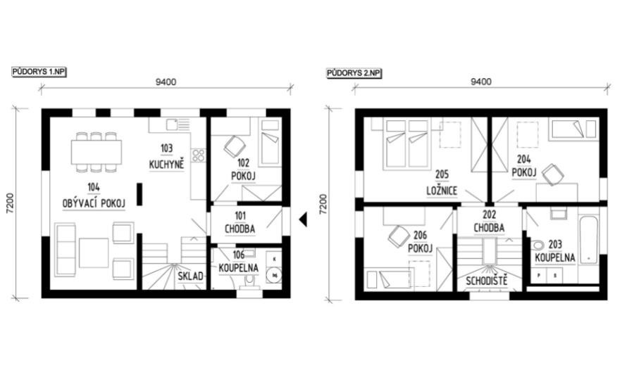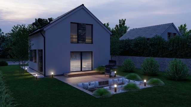 Dvoupodlažní rodinný dům AMBIENT 105 patří mezi oblíbené nízkoenergetické domy nejenom díky své dispozici 5+kk, ale také díky maximalizaci užitného prostoru na zastavěné ploše pouhých 67,7 m2. Ten sčítá komfortních 105 m2 rozdělených na dvě podlaží. Přízemí je tvořené prostorným obývacím pokojem, který umožňuje výstup na terasu a je spojený s jídelnou a kuchyní. Nechybí ani koupelna a pokoj pro hosty/pracovna. Druhé podlaží nabízí dva pokoje o velikosti 12, 8 m2 a 10,6 m2 a ložnicí o výměře 14,8 m2. Tím je zajištěno soukromí a klidová zóna vhodná až pro pětičlennou rodinu. Na patře se dále nachází i druhá koupelna, která odráží každodenní potřeby.