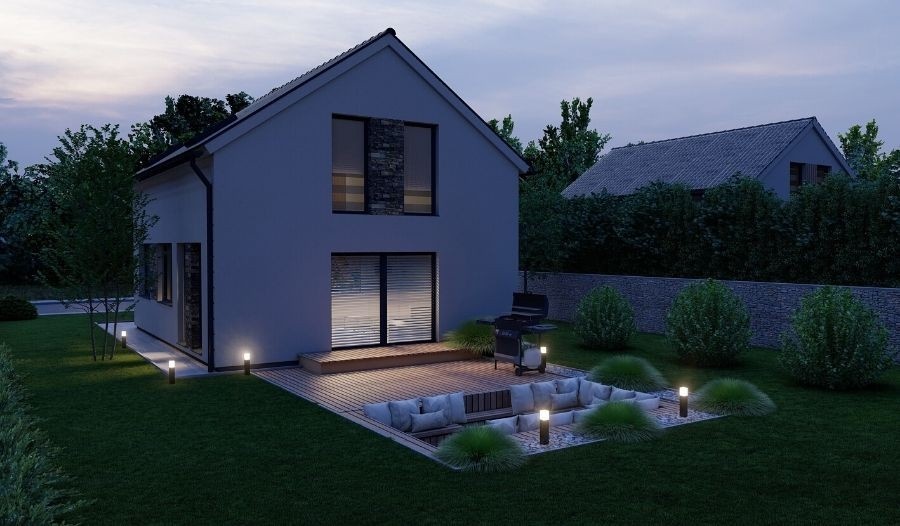 Nízkoenergetický dvoupodlažní rodinný dům AMBIENT 105 je postaven ze stavebního systému PURLIVE a může být dodán ve variantě pravá nebo levá, to znamená, že jej lze zrcadlově otočit dle orientace pozemku.