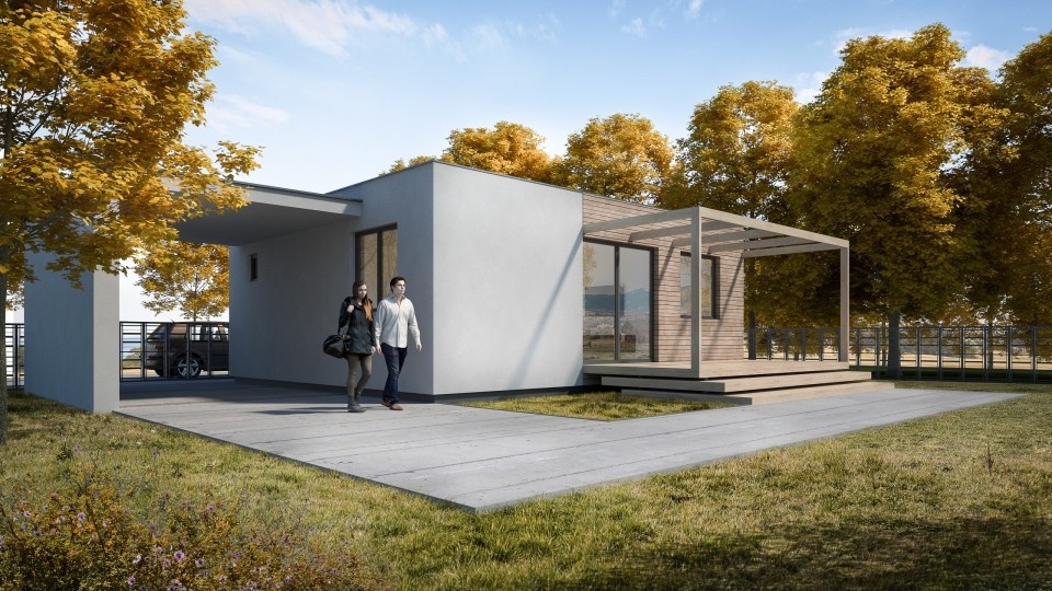 Exteriér KŮLNY lze dokončit libovolným fasádním systémem nebo obkladem. Dodavatelské práce a stupně dokončení dle dohody.